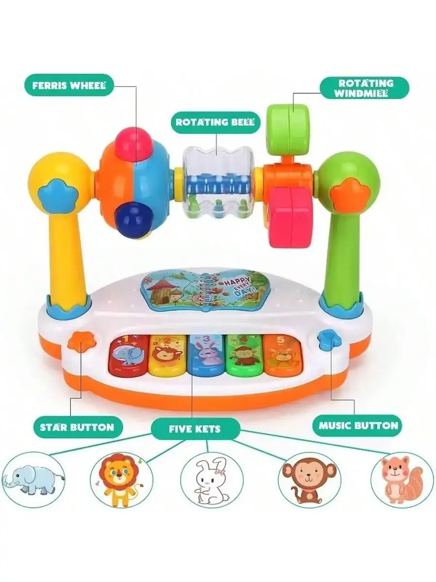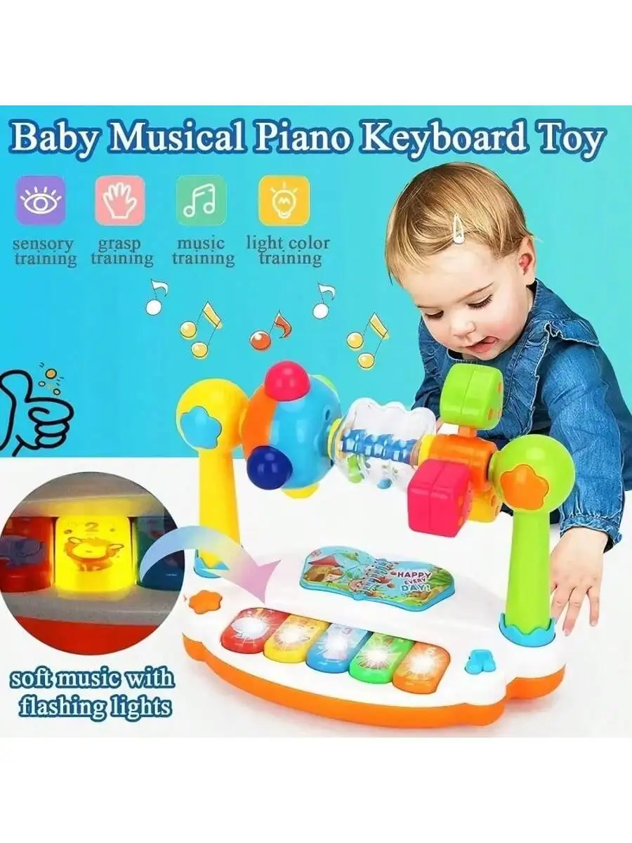 Brinquedo Teclado Musical para Bebês com Luzes, Educativo e Pedagógico para 12 a 18 meses – Presente para Meninos e Meninas de 1 Ano